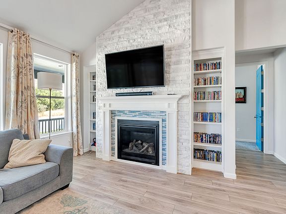 Dog-friendly fenced areaOutdoor livingLarge covered porchMosaic backsplashIn-ground trampolineDoggie doorBasketball standard