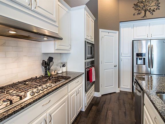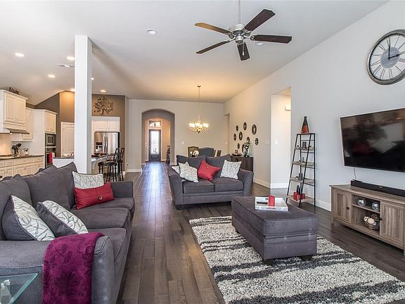 Stunning, multi-generational living: this home is flexible, spacious and offers privacy for everyone. Immaculate! Luxury and quality greets you at every turn. Rich beautiful dark hardwood flooring flows through-out this huge single story, built by Highland Homes. Gorgeous kitchen with 5 burner gas cooktop, double oven, Bosch dishwasher, 42in white cabinets, walk in pantry and massive granite island. Secluded oversize owner suite includes a sitting area, luxurious owner bath and separate shower , his & her vanities and his& her closets Additional features; plantation shutters , crown molding, media room, extended covered patio and 3 car Tandem garage. Backyard is perfect for entertaining !! Move-in Ready!!