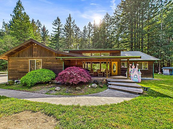 Private 5-Acre Redwood Retreat - Just 25 Minutes from Fortuna! Nestled behind a gated entrance, this 3-bedroom, 2-bath home sits on 5 flat, usable acres surrounded by towering redwoods. The open floor plan seamlessly connects the kitchen and living area, creating a bright and spacious feel. The primary suite features a walk-in closet, walk-in shower, and jetted tub for added comfort. A large two-car garage offers ample storage. Enjoy privacy, space, and endless possibilities in this peaceful setting just a short drive from town!