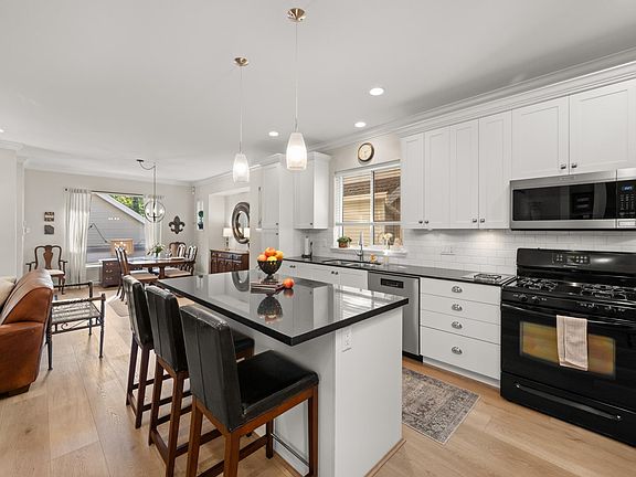 Meticulously cared for 5 bed, 4 bath Craftsman style home by Townline features a bright open layout & high end finishes throughout. Gourmet kitchen offers a gas stove, granite countertops, large island & plenty of storage-perfect for family living & entertaining. Upstairs features 2 spacious bedrooms, bonus study open area, primary suite with w/i closet & spa-inspired ensuite w/soaker tub & shower. 2-bedroom legal suite provides excellent flexibility for extended family, rental income or a home business (zoned for commercial business). Enjoy outdoor living in the fully fenced yard with aggregate stone patio + 3 parking spots inc double garage. Recent updates include flooring, appliances & hot water tank. Pride of ownership is evident in every detail. Quick & easy access to all amenities.
