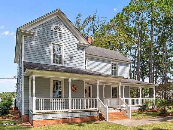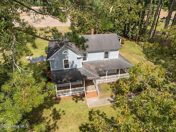 Historic 1921 Victorian Farmhouse - 1 Acre in the village of Yeatesville - Pinetown Discover the charm of a true classic with this 1921 Victorian farmhouse set on 1 acre with farm views. Known locally as the (Sam, Edna, & Martha) Robbins Home, built by Dr. & Mrs. M. L. Jackson. This 2-story, 2,600+ sq. ft. home offers 4 bedrooms, 2 full baths, and 10-ft ceilings. Special features include wood shake siding, a wrap-around porch, tongue-and-groove walls, and a kitchen fireplace, hardwood pine floors, herringbone pattern hardwood floor in foyer. The kitchen also offers updated cabinets, appliances, prep island, and breakfast area. A laundry closet with washer and dryer, plus a spacious walk-in attic, provide everyday convenience and storage. Comfort is provided by propane heaters and window A/C units, with pricing reflecting the opportunity to add a central HVAC system and updates to suit your vision. Extras include a 20' x 22' detached garage, Thermoglass windows throughout, and a termite bond in place. Just minutes from Historic Bath (7 mi), Belhaven (9 mi), and Washington (20 mi), with local schools nearby. A rare chance to own a piece of history and make it your own!
