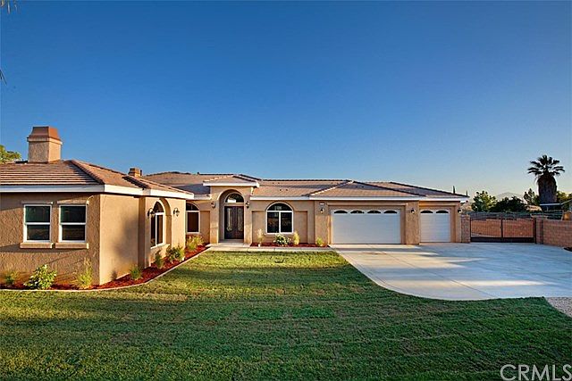 Built with the discerning home buyer in mind. This brand new custom single level 4 bedroom, 4.5 bathroom, 3413 square ft home was built with attention to detail, and entertaining in mind. A few amenities include wrought iron entry doors, Marrazi tile flooring, 7 1/4 in baseboards, 10-12 ft ceilings, 8 ft doors, crown moulding throughout, quartz counter tops, Kohler plumbing fixtures and pre wired for speakers and surveillance cameras. The gourmet kitchen features a large center island, quartz counters with glass tile backsplash, KitchenAid stainless steel appliances (6 burner cooktop, 2 dishwashers, convection oven and microwave), 2 oversized sinks and a "super pantry". The airy great room really lives up to it's name with 12 ft rustic beamed ceilings, pre cast fireplace and wiring for multiple TVs and surround sound. All the bedrooms are spacious and have en suite bathrooms. The master bedroom features a cozy fireplace and french doors that lead to a private covered patio, his & hers walk-in closets, a massive walk-in shower with 3 shower heads, dual vanities and a whirlpool tub. The laundry room has hookups for 2 washers and dryers. Set on .49 acres with a gated entry, front landscaping, 3 covered patios, gated RV parking and plenty of room for a pool.