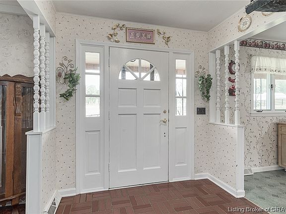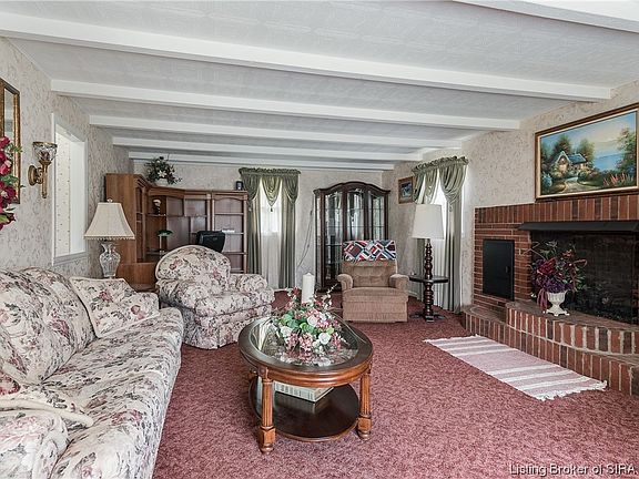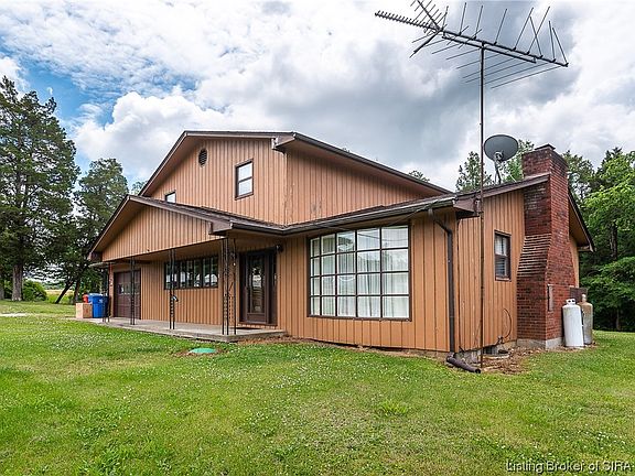POSSESSION at CLOSING- New roof installed August 2023 on the entire house. Country living & close to everything...minutes to I 64, 1.5 miles from fire station, minutes to Brandenburg, schools, parks, and all things in downtown Corydon. This 2 ac property has an abundance of outdoor space with a detached garage AND pole barn. There’s also room for a fire pit, garden, play set, entertaining space all of which backs up to woods for a degree of privacy & separation. The 2 story home has 3 bedrooms, 2 bathrooms, & is ready for its new owner. The large kitchen has 2 walls of solid wood cabinets & does not lack countertop or storage space. Appliances remain as well as the clothes washer & dryer which has a main floor laundry room. The split floor plan has 1 bedroom and 1 full bathroom on the main level & 2 bedrooms and 1 full bathroom on the second floor. The large living room has a beautiful brick gas fireplace, bay window, and beams on the ceilings. The 2nd bedroom has a sliding door that leads out to an upper deck. There is a covered front porch and also an attached 2 car garage. The home does need some updates & is priced accordingly. The home is on schedule for new roof. Elec Furnace & central air replaced-2022, Septic was pumped May-2023. Seller is selling as is but inspections may be done. Sq ft & rm sz approx.