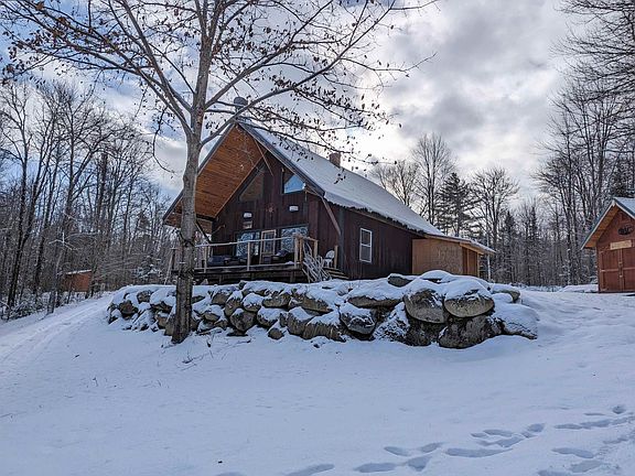 Beautiful efficient lodge situated on 10 private acres with 600+ maple taps, an orchard, berry patches, views of Kirby Mountain and so much more. Just a short distance to VAST and VASA trails. The foundation, walls and roof have been spray foamed making this one of the more efficient properties around. Wildlife abounds as the owner frequently sees deer, moose, and even the occasional bear. Only about 2 miles to Shadow lake in Concord. Custom black walnut and maple cabinets and stairs add to the rustic charm. The woodstove heats the property fast in the colder months. The drilled well and septic are less than 2 years old. In ground 1000 gallon propane tank is also less than 2 years old.