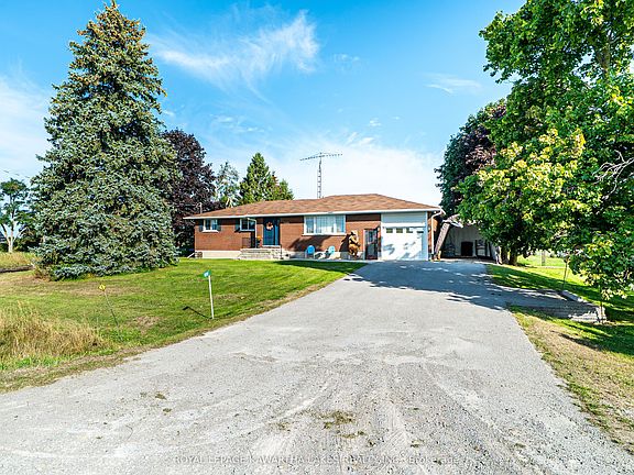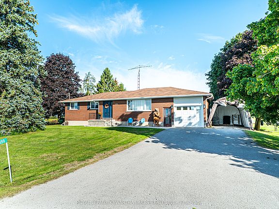 Discover this 3-bedroom, 2-bathroom bungalow located just outside Lindsay. The main floor features a welcoming foyer, a bright living room, and a kitchen/dining room combo with a walkout to the deck. Hardwood floors run throughout the three bedrooms, complemented by both a 4-piece and a 2-piece bathroom. The partially finished basement offers a versatile layout with a laundry room, den, recreation room with a built-in bar, and a spacious storage area. Outside, enjoy a large backyard with a garden shed and deck, attached single-car garage, view of farmers fields, and a generous driveway with plenty of parking. House has had numerous upgrades in the past couple years, full list attached.