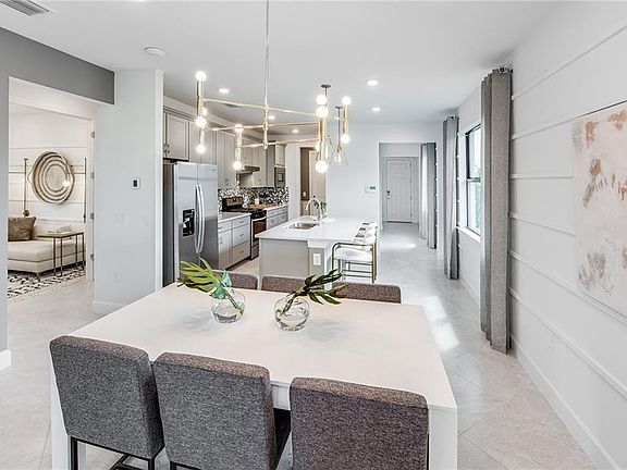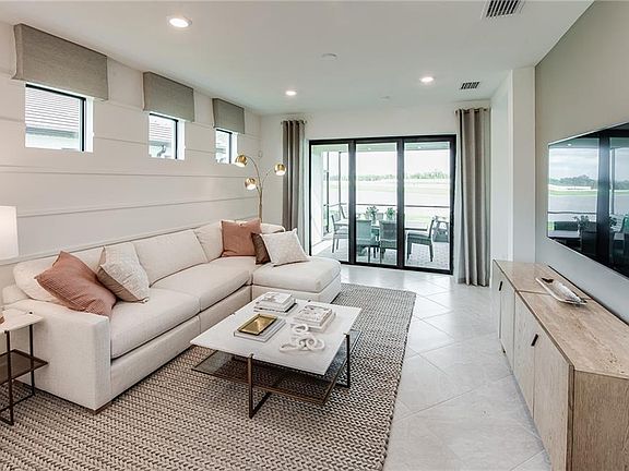 This Hallmark floorplan offers 3 bedrooms, 2 bathrooms, and a 2-car garage with a 4' extension, thoughtfully designed for modern living. The home features an outdoor-kitchen pre-plumb, a pocket sliding glass door, and a full laundry upgrade with cabinets and countertops. Additional highlights include a tray ceiling in the owner’s suite, white cabinetry with quartz countertops, tile flooring throughout, 8' interior doors, and a pool or spa pre-wire. With a tile roof and impact windows, this beautifully appointed home combines style, functionality, and comfort for everyday living and entertaining. Terreno by DiVosta is a gated community offering a resort lifestyle with open floor plans, gourmet kitchens, and large outdoor living spaces. For those looking for resort lifestyle communities with private amenities and modern houses, or luxury homes for sale in Naples, FL, Terreno should be your top choice. Neighborhood features include 15,000 sq. ft. grand clubhouse with large community room for events, catering kitchen, state-of-the-art fitness center, exercise studio, 8 pickleball courts, 2 tennis courts, dog park, playground, firepit lounge, dog park, resort style pool, lap lanes, heated spa, full-service restaurant bar & grill, food truck drive-up, 18-hole public golf-course next door & more!