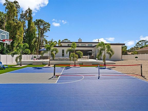 Beautifully crafted and maintained, this remarkable Sarasota custom-built home is one you’d be proud to call your own! FULLY FURNISHED by MM Modern Miami, there’s nothing left to do but move in and savor the lifestyle that awaits within this refurbished modern haven. Through the glass-inlaid double doors, discover a captivating, sun-soaked interior where crisp white tones, soaring ceilings, and gorgeous wide-plank flooring are on show. An elegant brick FIREPLACE warms the seamlessly flowing entertainment areas, featuring curated sculptures by renowned artists like Andrea Giorgi and Paul Bielec. Expansive glass sliders inspire vibrant indoor/outdoor celebrations, inviting you poolside after a sumptuous meal or hearthside games. An open-concept chef’s kitchen beckons with its top-of-the-line appliances, abundant cabinetry, an oversized walk-in pantry, and gleaming quartz countertops that extend to the multi-seater island. Movie buffs will love the state-of-the-art CINEMA ROOM where you can enjoy streaming shows in ultimate comfort. Equal parts form and function, the well-sized private retreats offer a restful escape after a long day, accommodated by exquisitely redesigned baths that feature an imported Maciej Zien European tile collection. Double doors reveal an unparalleled primary suite that pampers you with lanai access, a boutique-like wardrobe, and an ensuite exuding luxury at every turn. Fun and leisure abound as additional, recently installed recreational amenities flow outside with an alfresco dining area, a built-in BBQ grill, a pristine HUGE SALT POOL, a HOT TUB , and SPORTS COURTS sports for BASKETBALL and PICKLEBALL . New lush landscaping dotted with towering palms enhances the picturesque FULLY FENCED YARD.Plus, there’s a NEW ROOF, and an attached 2-car garage. Come for a tour while it’s still available! INVESTMENT POTENIAL: Siesta Key is a sought-after destination, and this modern home's proximity to the beach makes it a fantastic investment opportunity. Achieve consistent rental income and increase your real estate portfolio. Siesta Key offers an array of activities, from water sports and boating to shopping and dining at charming local spots. Embrace the island's vibrant arts and culture scene, explore nearby parks and nature reserves, or simply revel in the beauty of the Gulf of Mexico. Your piece of paradise is waiting! Don't miss this chance to own a turnkey home in the heart of Siesta Key's vacation haven with no CDD and HOA fee. Whether you're seeking an INVESMENT PROPERTY or your own slice of coastal paradise. !!!!Lender Rob Kozina, with NMLS#1081156 from Midamerica Lenders & Co, is extending an offer of up to 1% of the loan amount towards a rate buy down or lender credit specifically for this property. Midamerica Lenders & Co, NMLS#309009, is an Equal Housing Lender. Please be advised that this offer does not constitute a commitment to lend, and certain restrictions may apply!!!!!! ***Make sure you see the Virtual Tour***