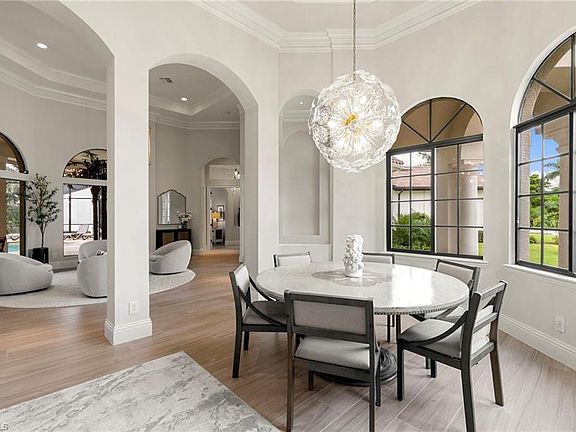 An architectural statement in Shadow Wood Preserve, this former Wyman Stokes model home is one of the largest estate homes in the community and has been meticulously reimagined for the modern connoisseur. Every detail has been curated for a life of effortless luxury, from the dramatic 20-foot ceilings to the seamless flow of newly installed flooring. The gourmet kitchen, a masterpiece of contemporary design, serves as the heart of the home, opening to a living space where the boundaries between indoors and out dissolve. A stunning negative-edge door retracts to reveal an expansive outdoor sanctuary. Here, western exposures provide a nightly spectacle of color as the sun sets over the 9th tee box. Entertain with ease from the outdoor kitchen, or unwind in the saltwater pool and spa, set within elegant travertine decking. Privacy is paramount, with five spacious bedrooms, 4 boasting a private ensuites. The residence also accommodates a den, a private fitness room, and an upper-level billiards room for endless recreation. Three distinct, screened outdoor spaces offer versatile options for alfresco living. No expense was spared in the home's complete mechanical overhaul, featuring a new 2023 tile roof, a freshly painted exterior, full impact windows and doors, two top-tier AC systems (2025), and dual water heaters, including a tankless system. The lifestyle extends far beyond the property line with coveted membership to The Commons Club. This exclusive membership provides unparalleled access to a private beach club, where you can enjoy sugar-sand shores and shuttle service. Indulge in waterfront dining at The Rookery, stay active at the state-of-the-art fitness and wellness center, or engage at the "Members Only" club. Paired with access to 54 holes of championship golf, this is a truly comprehensive and curated living experience.