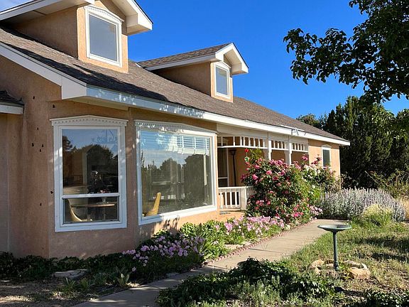 This beautiful home sits on 1.25 acres at the end of private road. Sit on the large covered front porch and enjoy the beautiful views! Home feels very open with its tall ceilings and many large windows providing lots of natural light. Kitchen has a dining space, lots of cabinets and a bar seating counter. Primary suite features a soaker tub, large closet and access to a private patio space. Oversize garage has a third space perfect for shop, working out or extra storage. Lots of room to garden and enjoy the outdoors. Recent upgrades include evaporative cooler, water heater, home humidifier and garage door opener. All appliances stay! Neighboring property 18B is also for sale providing a potential investment or multi-generational living opportunity - see MLS #1032090