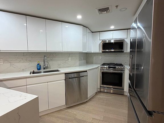 The home includes new hardwood floors, a modern kitchen with dishwasher and stainless-steel appliances, and extensive storage, including built-in closets and two walk-in closets.