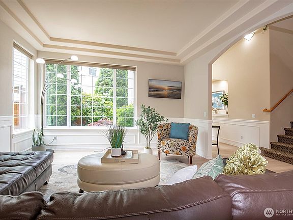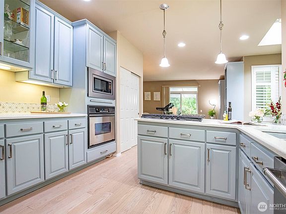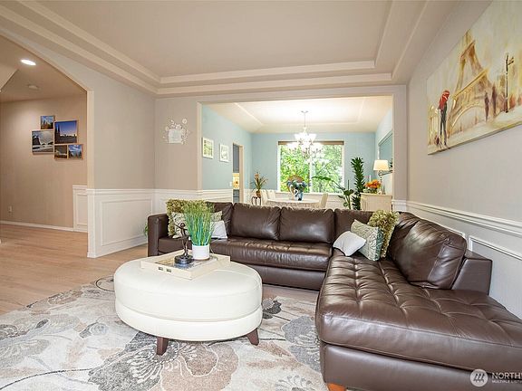 This stunningly updated home features custom hardwood flooring & soaring vaulted ceilings. Light-filled living room opens to the formal dining area. Gourmet kitchen boasts stone countertops, stainless appliances, gas cooking, eating bar & a cozy breakfast nook adjacent to the family room w/ cozy gas fireplace. Upstairs, the spacious primary suite w/ corner fireplace has a spa-inspired bath w/ soaking tub, separate shower & walk-in closet. Open loft provides flex space & separates 3 more bedrooms & full bath. Enjoy the park-like backyard backing to a greenbelt. 3-car garage, RV/boat parking, newer furnace & A/C. Conveniently located on the border of Canyon Park near I-405 and Filbert with quick access to I-5, shopping, and top-rated schools.