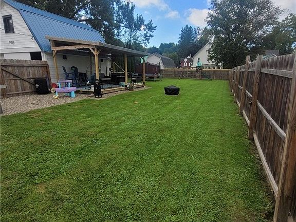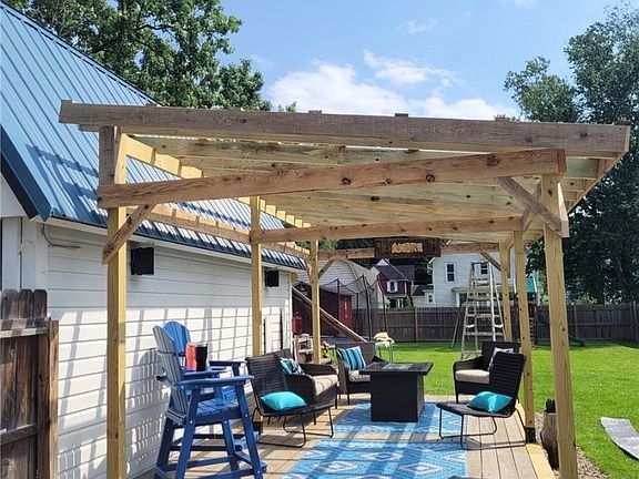 From the Front porch to the back fence, this home boasts of upgrades, improvements, comfort , style, entertainment, and gathering spaces. A beautiful place to settle and call home. The large front porch will grab your attention and welcome one to the home. Through the front door you will immediately step into the living room , long and spacious with gorgeous flooring throughout. Adjacent to the living room is a room currently being utilized as a home office, and play area. The next adjacent room off the living room is the remodeled multifunctional bathroom serving also as a convenient 1st floor laundry area. The kitchen is beautifully renovated in '24 with gorgeous butcher block counters, wood accents to compliment the area on ceilings and walls, adorned with custom wood window blinds. Lighting has been well thought out with dimmable recessed lighting, backlighting along shelves, over the sink lighting, and over the island center chandelier modern light adding to the comfort, coziness and details of this area. The coffee bar set up is a must. Enjoy the huge 6ft island with storage beneath and gorgeous tile top. Perfect area for entertainment and gatherings. Moving the gatherings to the outdoor area is easily done through the back door off the kitchen and directly into the fully fenced private backyard with solar lighting along the full fence. Newly built deck and pergola is perfect for furniture, bar, etc.. there is an area to enjoy a fire and the beautiful summer nights. To the back of the yard is a perfect play area with tons of room ( currently has a trampoline and playset). The garage adds bonus features of having its own panel box, large area for 2 cars, and 2nd floor area perfect for wood working, storage, or adding another area for entertainment or hobbies. This is home is move in ready. Make this home yours in time to enjoy all that summer has to offer.