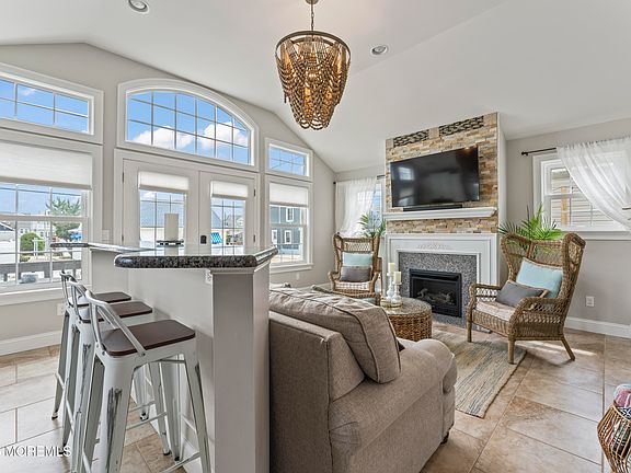 Upscale, Turn-Key Beach House on OWNED land. This beautifully finished beach home offers the ultimate coastal lifestyle, combining comfort, style, and convenience. The front of the property opens onto 14th Avenue in Seaside Park, while the rear provides direct access to the legendary Midway Beach—just a few houses away from the ocean. Built to state and local specifications after Sandy, so there is no need to raise this home. Inside, you'll find numerous upgrades, including stainless steel appliances, granite countertops, a custom backsplash, wood cabinetry, a tankless water heater, and a Stacked Washer and Dryer. Additional features include a stunning stone gas fireplace, cathedral ceilings, high-efficiency windows, and 24x24 ceramic tile flooring throughout. Both bedrooms have a sliding glass door with inlay blinds leading to a back deck. This property also offers pull down attic stairs, has excellent rental history, and a fantastic outdoor entertaining area including a hot and cold outdoor shower, and a storage shed. This is a true turn-key opportunity and furnishings may be available at owner's discretion.