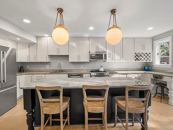 Welcome to this charming 3-bedroom, 2.5-bathroom townhome in Charlestown, offering exceptional natural light and incredible space across three levels of thoughtfully designed living. The entry level features a charming suburban-inspired mudroom that doubles as a home office, along with a bedroom tucked at the rear of the home and a convenient half bath, ideal for guests. Upstairs, the open-concept kitchen and dining area flow seamlessly to a private back deck, perfect for entertaining. The kitchen is outfitted with sleek Bosch stainless steel appliances, a spacious center island, and abundant cabinet storage. The adjacent living room boasts custom built-ins, generous natural light, and a cozy gas fireplace. On the top floor, two large bedrooms each offer large custom closets. The primary suite includes a ensuite bathroom with a double vanity and an additional full bath with a tub is located on this floor. The best part, two deeded parking spaces, one garage!