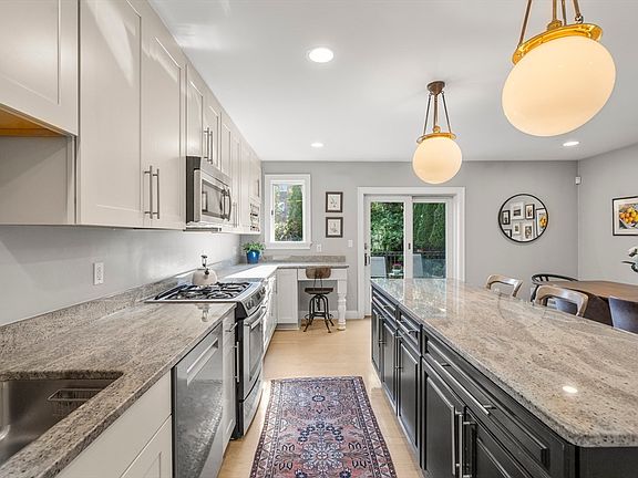 Cozy gas fireplacePrivate back deckSpacious center islandCharming suburban-inspired mudroomCustom built-insExceptional natural lightLarge custom closets