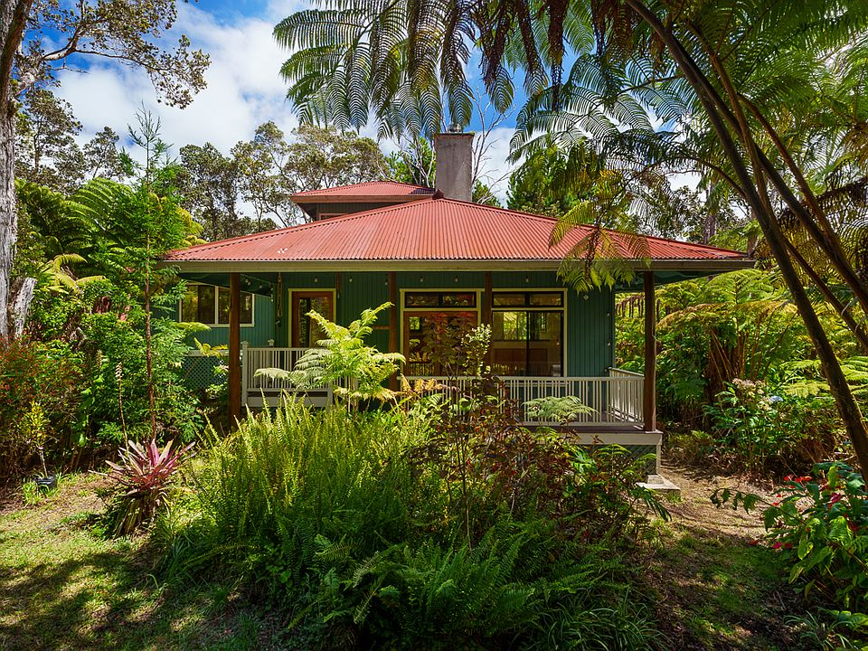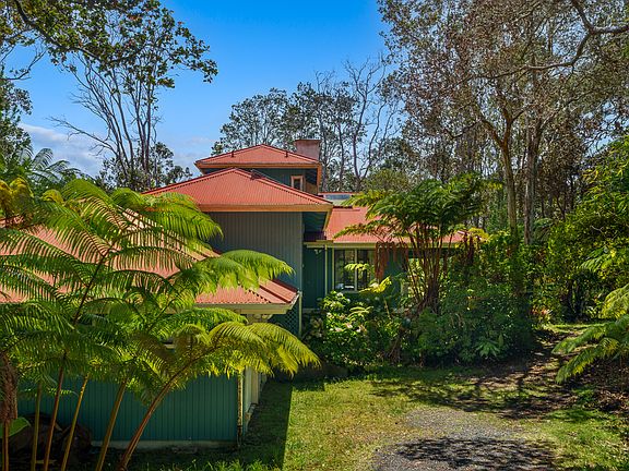 Designed by renowned Volcano architect Boone Morrison and handcrafted by builder Matt Luera, this custom home has been lovingly referred to as “a little jewel box”—and it truly lives up to its name.<br>With natural woods, striking ʻōhiʻa posts, and fine details throughout, this residence exemplifies quality craftsmanship. Sunlight filters through the forest and into every room, with skylights that invite both day and night sky views. Custom-designed skylight covers provide soft light by day and warmth at night.<br>A charming lofted retreat, reached by a “ship’s ladder,” offers a cozy sleeping nook in the treetops, meditation space, office, or quiet reading hideaway. The main living area features a custom-built redwood secretary desk, a wood-burning fireplace, cherry kitchen cabinetry, and hardwood flooring in bamboo and acacia that adds warmth and beauty. The kitchen is highlighted by a new Kucht stove, while the home also includes a new electric LG washer and dryer for modern convenience.<br>Outdoors, a pump/pressure tank shed protects the dual catchment water system, complete with reverse osmosis drinking filter and quantum filtration system, plus a fire-response standpipe—an invaluable feature highly regarded by insurance carriers.<br>The property itself is as magical as the home: a 2.43-acre RS-20,000 zoned lot with sunny clearings for gardening and untouched native rainforest at the rear. Wander the grounds to discover secret garden-like spaces, relax on the storybook front porch, or host unforgettable meals in the covered garden pavilion—a roofed outdoor dining deck with posts nestled among the flowers and greenery.<br>From its stained-glass skylight to the thoughtful blend of natural textures, artisan features, and modern upgrades, this home is an enchanting expression of Volcano rainforest living at its best.