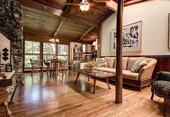 This captivating home presents some of the very best that Volcano has to offer. Located amongst a luxuriant ohia and hapu'u fern forest. The home is located in one of the most attractive parts of Volcano Village. Just five minutes from the entrance to Volcanoes National Park and less than a half-mile to the heart of the village. Noted Volcano architect Boone Morrison, a former owner, transformed and expanded the original home with remarkable effect. Numerous skylights brighten the wood-lined interiors, with beautiful window views into the forested garden. Oak floors and a wood-burning stove set against a dramatic lava rock wall make for warm and memorable evenings. The main house comprises an open-planned living room, kitchen and dining area; two bedrooms and two bathrooms plus a large family room that could be used as a third bedroom. The sale incorporates four separate tax keys to ensure quiet , space and privacy. The four tax keys together make the property 36,932 square feet of land. The property also includes a charming self-contained cottage (currently operating as ‘Ferny Hollow’ vacation rental accommodation). There is also a large workshop / artist’s studio and a charming little play house for the children or grandchildren. A magical charming playground where one's imagination can inspire creativity. All this set in a mature and magical fern forest garden with an understory of camellia, rhododendron, anthuriums and orchids. There are also small walking trails throughout the property. Little chips of china and pottery hidden amongst the ferns as you walk on the trails. So sweet one might think there are fairies hiding in this charming spot. The photovoltaic system is paid in full. The buyers will enjoy substantial electricity savings as it ‘net meters’ to Helco. Electrical in home was upgraded. The fireplace and chimney are all new. Also a fiberglass enclosed catchment and ultraviolet purification system for water purification.