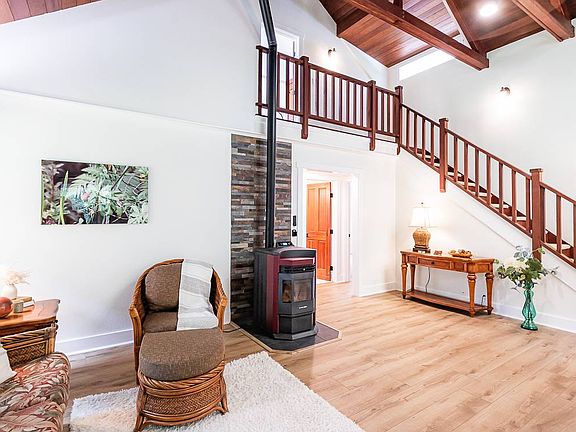 WOW! This custom built home, designed by noted Volcano architect, Boone Morrison, has undergone a gorgeous remodel over the past year. Construction features are typical of the craftsman style of Boone, i.e., redwood trim work, cathedral ceilings and beveled beams as well as stained glass accents and large windows to enjoy views of surrounding forest. The architectural style suits the environment and climate of Volcano. This custom construction could not be duplicated at the list price!