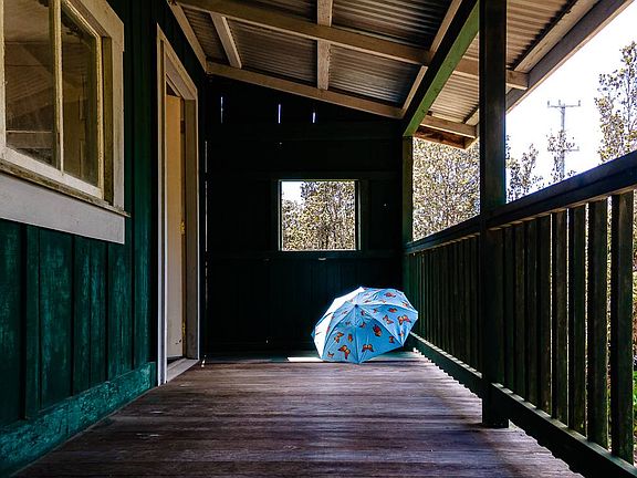 At time of purchase, kitchen and bath were demolished due to poor condition. Since purchase, owner has replaced roof and gutters and installed polyurethane catchment tanks under house.