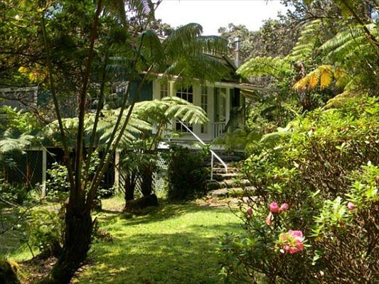 Listen carefully and you can hear the birds chirping in your own private garden. Ohia trees and Hapuu ferns grace this property of over 15,000 square feet in Volcano Village on Kalani Honua Loop. The 2 bedroom and 1 bath cottage has a small but efficient kitchen with built ins. No waste of space here. The living area is a wide open space with high open beam ceilings. A gas fireplace will bring warmth on those cool Volcano nights. Although there is carpeting throughout most of the home, it seems that under this one can find the real deal - yes hardwood floors. The 2 bedrooms and bath are just off to one side. More than enough space. Current public records do now provide any information on the structure but in their system it does show at one time they had a 948 square foot home and drawings which seem to match the current structure. The first recorded documentation in their system shows it was surveyed in 1944 although sellers think that it may have been built in the 1920's. Regardless... this could be your cozy getaway in Volcano Village and at an outstanding price.