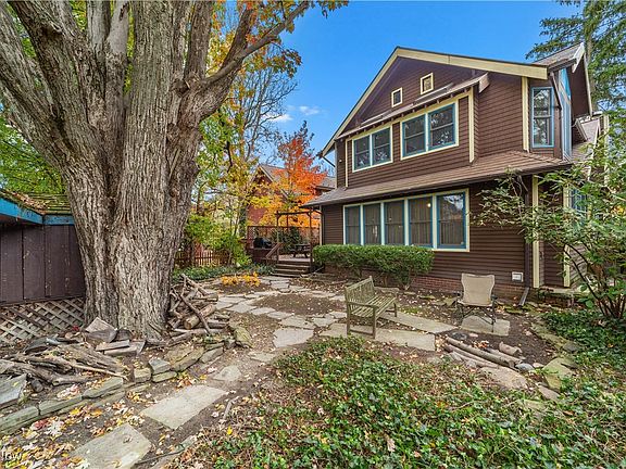 Welcome to wonder!! This Fully Furnished SHORT TERM RENTAL Features a dreamy open concept, lofted areas, playful passageways and a whimsical outdoor area, each space plays a unique character in this home's storybook charm. Located in walking distance to Baldwin Wallace, a short drive to Cleveland Hopkins Airport (CLE), and an easy ride to Downtown, West Side Market, Cleveland Clinic, and University Hospitals, this special place makes everything accessible while providing a spacious and comfortable oasis in a unique century-old home. Imagined with love and creativity, it shows in every single space. The first floor features a spacious and open layout, including a formal dining room, living room, and a large great room with large windows, built-in window seats, and access to the patio and backyard. The kitchen features stainless steel appliances and plenty of space to work. Upstairs, you'll be greeted by four large bedrooms, each featuring unique elements to make them special. The main bedroom features a king-sized bed and beautiful skylights to add natural lighting. The second bedroom is lovingly called the library, with a built-in bookshelf, desk, and full-sized bed. The final two bedrooms are mirrored and can connect to each other through a mini passage door. They both feature lofted sleeping spaces with queen beds on the upper level and built-in twin beds on the lower level, huge closets, and built-in window seats to enjoy a book or a quiet moment. The home has 3 and a half bathrooms -- two upstairs hall baths, a half bath on the first level, and a bathroom with a newly built tile shower in the basement. While the interior is full of whimsy, the outdoor spaces also shine. Whether using the grill and eating on the patio deck, enjoying a coffee on the front porch, or enjoying the whimsical garden vibe of the backyard, the outdoor spaces are inviting and enjoyable.