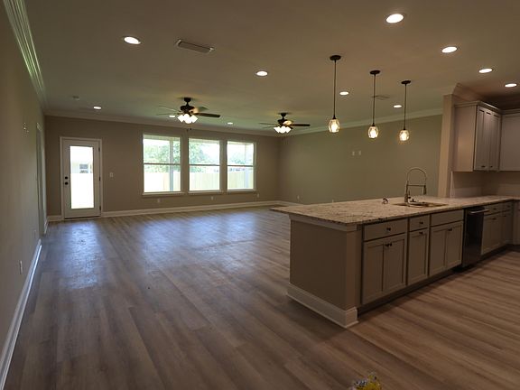 Awesome new plan! This 4/3 custom brick home has super curb appeal and is constructed on a deep lot with both large front and rear yards. There are 10 Ft. Ceilings w/ impressive crown molding, has LVP flooring throughout most of the home except for the wet areas which are tiled. At the right of the dining room is the gourmet kitchen which boasts bisque cabinetry, granite countertops, a breakfast bar and stainless appliances. Bedrooms 1 and 2 are located near the front entry along with bathrooms 1 and 2. The large master suite is located at the rear of the home and has a double vanity, 2 large walk -in closets, whirlpool tub and separate shower. Yard is fully sodded/ landscaped and comes complete with a well and sprinkler system. Completion expected in early March 2023.
