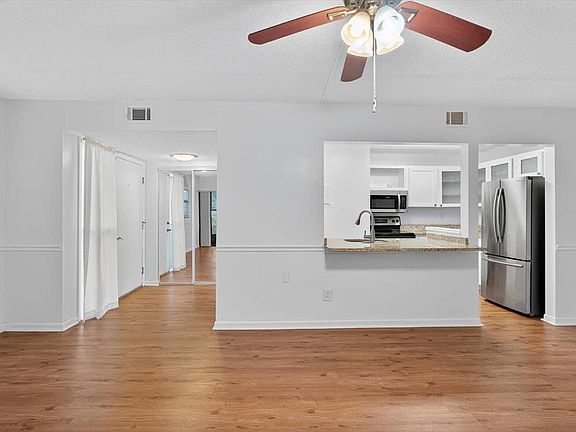 Embrace active coastal living, enjoy a seasonal retreat, or retire in comfort in this GROUND-FLOOR condo, beautifully nestled among mature trees and lush greenery. Begin your mornings on front porch, savoring a cup of coffee while taking in a partial Intracoastal view and the invigorating scent of salt air carried by the gentle coastal breeze. In the evenings, unwind on the screened-in lanai overlooking tranquil landscaping, thoughtfully set back from the road to provide true peace and privacy. Just steps from your door, one of the community’s three sparkling swimming pools awaits - a sun-soaked oasis ideal for morning laps or leisurely afternoons basking in the Florida sun. Inside, the residence is bright and welcoming, featuring tile and laminate flooring throughout the main living areas, brand-new carpeting in the bedrooms, newer appliances, and a beautiful, efficient kitchen. The open floor plan effortlessly creates a perfect space for both relaxation and entertaining. With all living spaces conveniently located on the ground floor, this home offers accessible, easy living for all stages of life. Conquistador Condos of St. Augustine Shores is ideally suited for retirees, snowbirds, and active-lifestyle buyers seeking a vibrant, low-maintenance community. Residents enjoy an exceptional array of amenities including three swimming pools (one heated), three tennis and pickleball courts, a fishing pier, shuffleboard and bocce courts, a putting green, a car wash station, and over 50 miles of scenic walking trails punctuated with peaceful resting spots. Additional privileges include access to the prestigious St. Augustine Shores Golf Club and the nearby Riverview Club, which boasts a community center, playgrounds, sports fields, and more. Offered at excellent value and positioned away from road noise, this exceptional condo is priced to sell quickly and is being sold as-is. Don’t miss this rare opportunity to experience the best of coastal living in beautiful St. Augustine!
