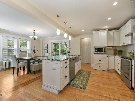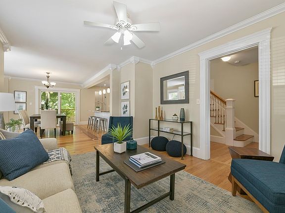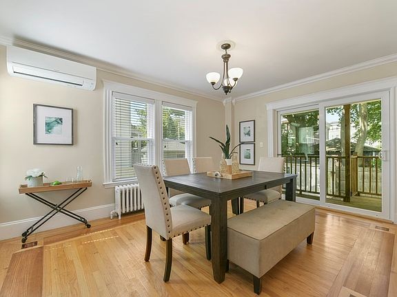 This spacious and sunlit Roslindale Colonial features a flexible floor plan and updates for modern living. From the covered front porch, step through the entry foyer into the entertaining space. Open living and dining room with slider to the back porch flows into the renovated kitchen in granite, stainless steel, and white cabinetry plus recessed lights and island with pendant lighting. Two upper floors offer 6 rooms providing options for 3+ bedrooms and your choice of office, exercise, and play spaces. Complete with 4 heat/AC mini-splits, in laid oak floors, off-street parking, fenced yard, patio, gardening shed, and attic & basement storage. This location offers access to the Commuter Rail, Fallon Field, and is centrally located between Roslindale Square and Centre Street in West Roxbury with all of the restaurants, shops, and amenities they offer. A convenient and comfortable place waiting for you to call it home.