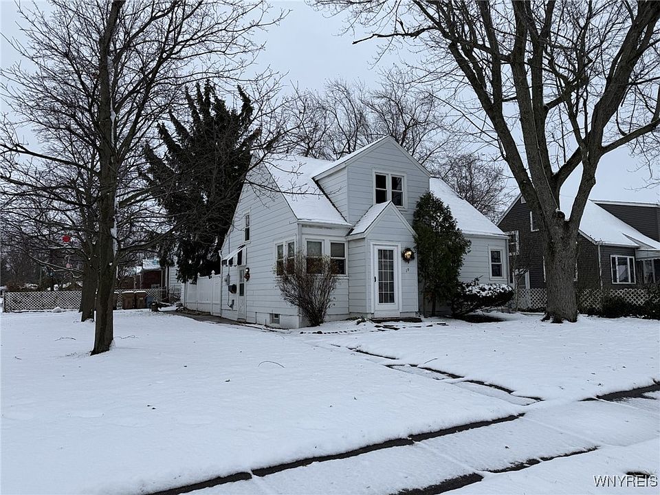 Absolutely charming well maintained corner lot Cape. Offers 4 Bedrooms ( this family had used one as a den). Large living room. Hardwoods found underneath the carpet. Should be in very good condition as it has been protected. Tons of closet space. Updated bathroom. Eat in Kitchen. Laminate counter tops and peninsula. Gas range and hood. Refrigerator. Double deep porcelain sinks. Dark Oak cabinets. Vinyl Floors. Hard to tell in the cold weather but the fenced patio and gardens are zen like. Water heater 2024, Furnace 2024. Many replaced windows. 2 car detached garage. Beautiful open space heated basement. Move in and enjoy. Showings to begin immediately. Seller reserves the right to set an offer date. Sold AS IS. Owner hasn't occupied since she was a child.