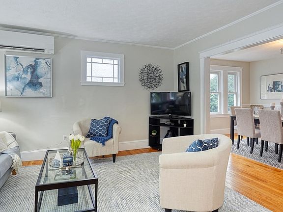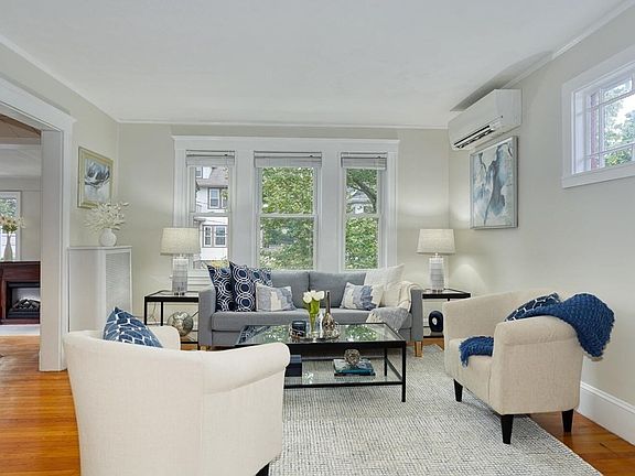 Wonderful sun filled 4 bedroom condo with 2 newly renovated baths sits on a quiet tree lined street just minutes from 73 bus line to Harvard Sq, commuter train, PQ playground, & Butler Elementary. Exclusive parking & yard space offer a single family feel. Open floor plan expands through the family rm, sun rm, living rm and dining rm, all with gleaming wood floors and updated windows. Mini-split to zone heat/cool this area. Kitchen features Corian counters, stainless appliances, recessed lights, and an island for perfect food prep area and casual meals. Back porch is accessed through the kitchen making it ideal for morning coffee or outdoor dining. Completing this level is a bedroom with double door closet as well as built in storage, and a renovated bath. The 2nd floor has 3 more well-proportioned bedrooms, another newly renovated bath w/ large shower stall, & a laundry room. Pull down stairs to attic plus basement storage. Near great dining, shopping and transportation options.