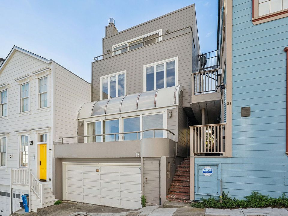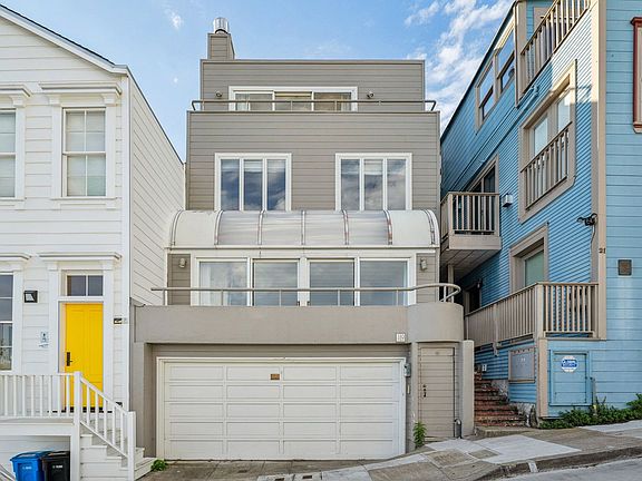 This fantastic, modern three level four bedroom two and one-half bath single family home is located at 19 Alta St on the top of Telegraph Hill. It has sweeping views of the Bay, Alcatraz, Coit Tower, and the Bay Bridge from most rooms. From the rear of the house in the kitchen, dining room, and rear bedroom you have a view of the TransAmerica building. There are two private decks with bridge and bay views and a small back yard. It is a short walk to North Beach and the Financial District. WalkScore is 97.