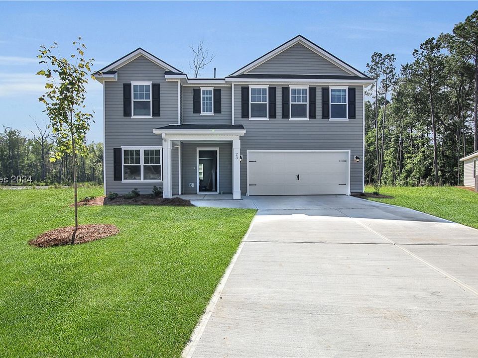 The Cypress plan by Smith Family Homes is under construction in Heritage at New Riverside with an estimated completion of May 2024. The Cypress is a 3 bedroom, 2.5 bath plan featuring a covered back porch, an office/flex space downstairs, a loft area upstairs, and a spacious owners suite upstairs with large walk-in closet. Kitchen has stainless appliances (excluding fridge), granite countertops, gas range. LVP laminate in the common areas downstairs, carpet in the bedrooms, and tile in the bathrooms. Seller offering $10,000 towards closing costs when working with preferred lender. Model home shown, to be similar but not identical.