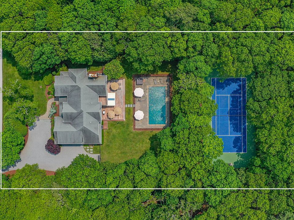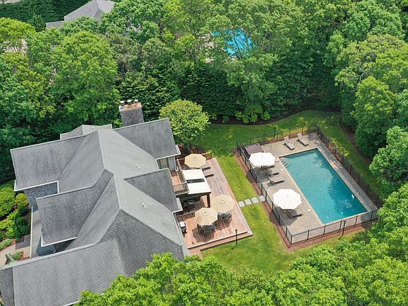 This gorgeous six bedroom, six bath rental in desirable Quogue Village on 1.2 acres has it all. The main level features a fully-equipped eat-in-kitchen with granite counters and two dishwashers, a formal dining room , large living room with fireplace, and en-suite junior primary. The second story holds two expansive private primary suites and three guest bedrooms. Outside find the expanded mahogany deck, hot tub, gunite pool and all weather tennis court. New improvements include a large screened-in covered porch with skylights, LED lighting, motorized roll-up screens for summer dining.
