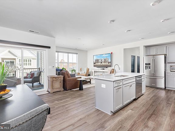 Welcome to this stunning new one-level active adult condo in the premier Cascades at Embrey Mill community where comfort meets style. Step into a spacious foyer with an elegant tray ceiling and an open floor plan featuring luxury vinyl plank floors and designer finishes. The chef-inspired kitchen impresses with a large island with bar seating, quartz countertops, custom backsplash, stainless steel KitchenAid appliances, modern gray cabinetry with pull-out shelves, and a generous walk-in pantry. The kitchen opens seamlessly to the dining area and bright, inviting living room perfect for entertaining or relaxing. A versatile built-in office with custom cabinetry offers the ideal work-from-home space. The laundry room includes a brand-new washer and dryer for added convenience. Retreat to the luxurious owner’s suite with a spacious walk-in closet and an elegant bath featuring dual quartz vanity, a frameless glass shower, private water closet, and an upgraded tile package. Two additional bedrooms and a full hall bath provide flexible options for guests or hobbies. Enjoy beautiful sunsets and tree views from your private balcony. Additional highlights include custom remote-controlled blinds, a one-car garage, extra storage, and shared elevator access. This home also features smart-home technology including programmable thermostat, keypad entry, CAT6 wiring and energy-efficient construction for modern living. Residents of Cascades enjoy resort-style amenities: clubhouse, pool, fitness & yoga studio, patio with fire pit & grills, pickleball and bocce courts, and more. Do not miss your chance to own this exceptional home - schedule your showing today!