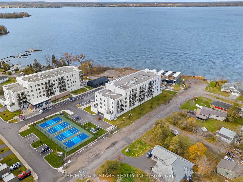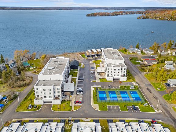 Welcome to the Fenelon Falls Lakes Club - a New Luxury Resort-Style Complex! Penthouse 5 offers the perfect blend of lakeside living and modern luxury, with stunning waterfront views from nearly every room. This spacious residence features over 1,400 sq. ft. of interior space plus a large private balcony - ideal for relaxing or entertaining. Enjoy seamless indoor-outdoor living with oversized wall-to-wall sliding glass doors, soaring 10 ft. smooth ceilings, quartz countertops, and expansive windows that fill the home with natural light. A separate den/office space off the kitchen provides the perfect area for working from home or quiet relaxation. The inviting living area showcases a striking gas fireplace, perfect for cozy evenings by the lake. The primary bedroom boasts two walk-in closets and a beautiful 3-piece en-suite, creating the ultimate private retreat. The resort-inspired amenities include an outdoor pool, fitness center, pickleball and tennis courts, dog wash station, and a neighboring marina - all set along beautiful Cameron Lake. Conveniently located just minutes from boutique shops, restaurants, groceries, golf, the beach, and the rail trail - and less than 2 hours from Toronto.