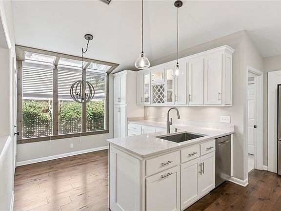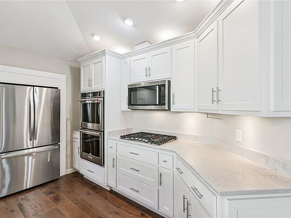 3 bedrooms or 2 bedrooms and bonus room. Both bathrooms have been fully renovated with quartz and marble tile. The spacious primary suite includes a double vanity, dedicated makeup station, walk-in shower, and walk-in closet. A new laundry room adds convenience, and the LG washer and dryer will remain. Tons of built in cabinets in garage allows for extra storage.