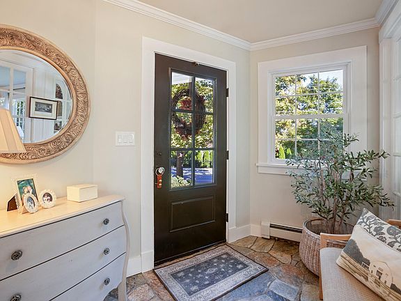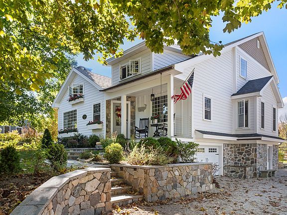 This showstopping custom home, just a short stroll from Dock Square and Kennebunk Beach, offers a perfect mix of luxury, comfort, and a thoughtful design. Nestled on a large, beautifully landscaped lot, the home exudes charm with stone accents and a welcoming front porch that captures winter water glimpses. Inside, the open concept living space is a masterpiece, featuring dramatic wooden beams, windows galore, and custom built-in bookcases that add both function and elegance. Two distinct sitting areas, each with a wood-burning fireplace, provide inviting spaces to relax, while the heart of the home—a central kitchen with a large island and pantry—flows seamlessly into two dining areas, perfect for entertaining.
