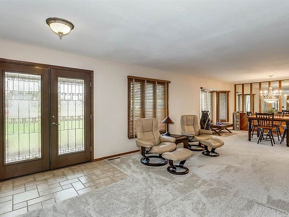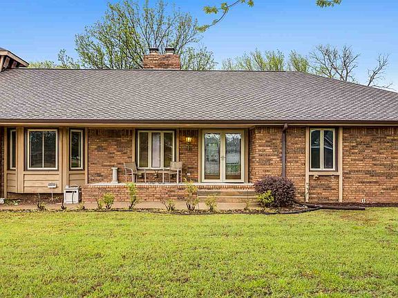 You will love this beautiful all brick ranch home situated on 1.13 acres in a quiet peaceful subdivision in the desirable Goddard area (with no HOA dues)! With 3700 sq ft of living space, 3 bedrooms and 4 bathrooms, there is plenty of room for the whole family. On the main level, you’ll walk in the front door to see freshly painted walls, new knock down ceilings and new carpet throughout the home. The master bedroom comes with master bath, walk in closet and patio doors that lead you right onto the back deck. There are two additional bedrooms and a hall bath on the south end of the home. Enjoy family time in front of the gas fireplace in the hearth room off of the kitchen. There is a spacious kitchen with loads of cupboard and countertop space for the chef as well as a formal dining area. All appliances stay. The dishwasher was new in 2019 and the stove is gas and electric, to accommodate the multitalented chef! The laundry is on the main level and there is another full bath and more storage space on the north side of the home. In the basement, you will enjoy entertaining your guests with the spacious family room, equipped with a pool table that will stay with the home, a wood burning fireplace to enjoy winter evenings and a kitchenette area equipped with burners, a wine fridge, sink and more cupboard and countertop space! There is another bathroom in the basement and a bonus room that could easily be turned into a 4th bedroom with the installation of an egress window! There is plenty of extra storage space in the mechanical rooms. For the car enthusiast there is a 4 car garage (third stall is long enough to park 2 cars) and you’ll still have plenty of room to tinker in the garage! Outside the home, you’ll find an in-ground pool and a beautiful deck and pergola area to enjoy the outdoors. The privacy and iron fence around the pool was installed in 2019, and the iron fence was put in on the east side to allow you the view of the pond! Another wonderful ‘extra’ for this fantastic property. There is also a nice sized storage shed to store additional outdoor items. The owner spared no expense on maintenance of the home. During his ownership, he has installed high quality windows and doors throughout the home, HVAC system, hot water heater and a huge pressure tank for private well just to name a few. And a new roof and seamless guttering will be installed the last week of April. Home is just minutes from Lake Afton and short drive to Wichita. This one is a keeper, so set up your showing today!