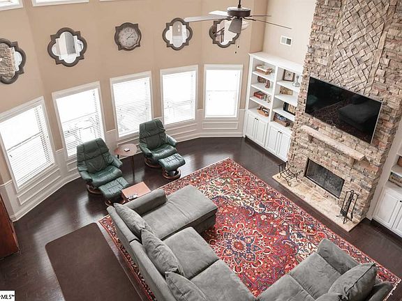 Are you looking for a large home on a large (over 1/2 Acre) lot with privacy and at a fair price. Are you looking for award winning schools? Oakview Elementary, Riverside Middle School, and J L Mann High School. Does a small gated community interest you, where your children can feel safe to play outside without worrying about traffic? Would you be interested in 5+ Bedrooms, 4 Full Baths, 2 Half Baths and an oversized 3 car side entry garage? Can you see your family enjoying the media/bonus room with kitchenette plus room for exercising, office or craft room? Can you see, you and your kids playing in your gunite pool with saltwater chlorinator with complete privacy? Or do you see yourself watching them swim from your covered patio while you read a book by the outdoor fireplace. Imagine your nights enjoying your fire pit while the kids play on the large green space or on their play set? Or maybe you want to roast marshmallows by your outdoor fireplace? And enjoy security of a completely fenced in back yard? And what about the Cook's Dream Kitchen? Top of the line appliances: Thermador, Bosch, Miele.....gas cook top, double ovens, plenty of work space areas, pantry and huge granite island. Do you dream of a family room with high ceilings? With ceiling to floor windows overlooking your backyard and ceiling to floor stone fireplace. Or you can retire to your grand master bedroom suite. Enjoy reading by the master bedroom fireplace, Plenty of space here!! Your ensuite features his and hers separated walk-in closets with built ins, large walk in shower, soaking garden tub, his and her comfort high sinks. All of the bedrooms are spacious and have walk-in closets. Of the four bedrooms, two have their own dedicated bathrooms and 2 share a Jack & Jill bathroom, and do not forget about the entrance! Enter the home into a two story foyer that welcomes you to the formal Dining Room, Family Room with built ins or Kitchen. There are so many options with this large home! If this sounds good to you, please make an appointment to come see 19 Bellagio Way? Minutes away from Five Forks, Oakview Elementary, Greenville Spartanburg Airport, Hospitals, Restaurants and Shopping.