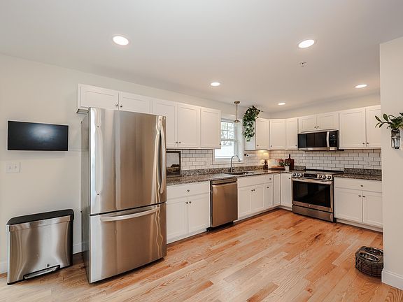 LIKE-NEW TOWNHOUSE WITH STYLE AND COMFORT! Step inside this beautifully maintained home offering three levels of bright, comfortable living. Sunlight pours into the open-concept spaces, where the heart of the home is a stunning eat-in kitchen featuring gleaming countertops, a stylish tile backsplash, stainless steel appliances, and a custom coffee station—perfect for both everyday living and entertaining. The adjoining living area showcases hardwood floors, a custom electric fireplace with a framed TV and elegant wall sconces—truly like a page out of Pinterest. Upstairs, you’ll find two well-appointed bedrooms, including a serene primary suite with its own three-quarter bathroom. A thoughtfully designed custom laundry area with stackable washer and dryer completes the second floor for ultimate convenience. The finished lower level provides a versatile flex space ideal for an office, gym, or guest retreat, and opens through sliding doors to a private composite deck where you can relax and unwind. A one-car garage including an electric car charger as well as accent wall and waterproof PVC floor mats adds even more practicality to this already perfect package. This move-in ready townhouse combines modern finishes with a warm, welcoming feel—don’t miss the chance to call it home!