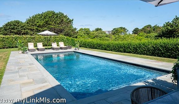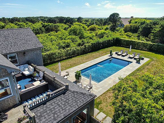 Contemporary home with distant water views located on a private street in an exclusive Dionis neighborhood within walking distance to Dionis beach. Located at the end of Bishops Rise Lane, this beautiful 4-bedroom, 3.5-baths home has every modern amenity, with the possibility of adding an additional Cottage and Cabana adjacent to the current structure - state of the art architectural plans available to buyer. An expansive heated pool surrounded by a large bluestone patio and garden completes the details of your future Nantucket home. Please call for more information or an appointment to preview this special property.