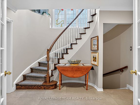 Set along a quiet, tree-lined court in Rockcliffe Park, 19 Bittern Court is a home of quiet sophistication where classic architecture, natural light, and cultivated tranquility converge. Steps from MacKay Lake, conservation area and the pond beyond, this elegant end-unit offers privacy, proportion, and timeless design. A sweeping circular staircase, stained-glass details, hardwood floors, and a wood-burning fireplace set a tone of understated grace. The main floor office provides calm versatility, while the dining room opens to a large covered terrace surrounded by treetops perfect for morning coffee or candlelit evenings.The bright kitchen blends pale cabinetry with granite counters; upstairs, three serene bedrooms include a tranquil primary suite with walk-in closet and ensuite bath.With beautifully maintained grounds and easy access to Beechwood Village, MacKay Lake trails, and good schools, 19 Bittern Court embodies impeccable luxury in Ottawas most distinguished enclave.