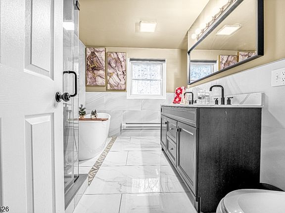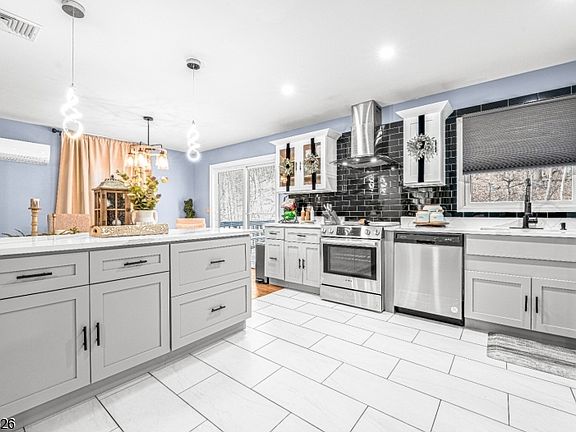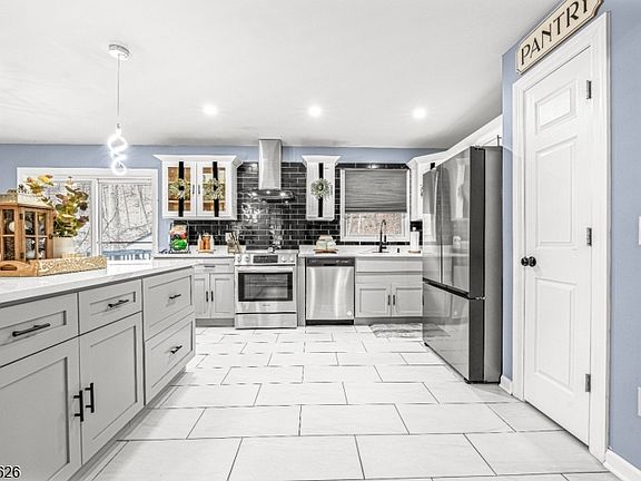 Tucked away on a quiet, secluded street, this beautifully renovated 3-bedroom, 2-bath home with en-suite bathroom blends modern luxury with everyday comfort. From the moment you arrive, you'll notice the impressive curb appeal new paver driveway, walkway, and patio, all accented with custom lighting. The backyard is an entertainer's dream featuring a built-in stone fire pit with seating and an expansive two-level deck.Step inside to a sun-filled open-concept kitchen, dining, and living area, anchored by a sleek linear fireplace surrounded by stunning stonework. The newly redesigned kitchen boasts a center island, brand-new cabinetry, granite countertops, and stainless steel appliances, with brand-new sliders that open directly to your outdoor living space.The exceptional main bathroom feels like a private spa, showcasing double sinks, a freestanding soaking tub, and a luxurious separate shower.The lower level offers a spacious family room complete with a wood-burning stove, ideal for cozy nights in. A beautifully renovated full bath features a waterfall rain-shower system, and the laundry area is conveniently located on the same level. Brand new septic tank has been installed !With a 2-car garage, modern upgrades throughout, and designer finishes in every corner, this home truly checks every box.