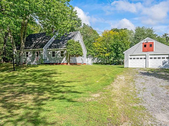 Welcome to 19 Bradley Pond Road! Private location on a quiet dead end road. Classic cape style home with 3 good sized bedrooms, including a first floor bed/bath and laundry. 2 spacious bathrooms, one on each level. Large kitchen with island, light filled sun room and an oversized rear deck are just a few of the attractive amenities this home offers. Many possibilities with multiple garages, heated 4-car garage and work shop, separate office building, RV pad, large pole barn for tractors or other equipment. Plus an additional lot that can be divided with an existing single wide mobile home currently rented month to month. The front portion of the property includes plenty of additional parking and good visibility on route 201 for your home based business.