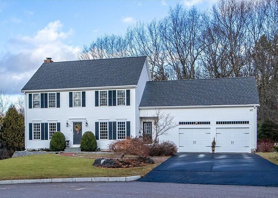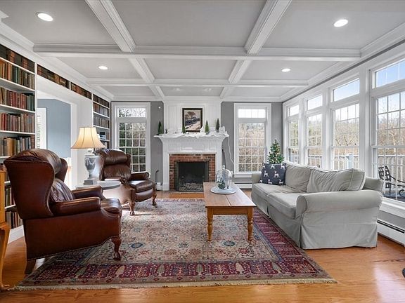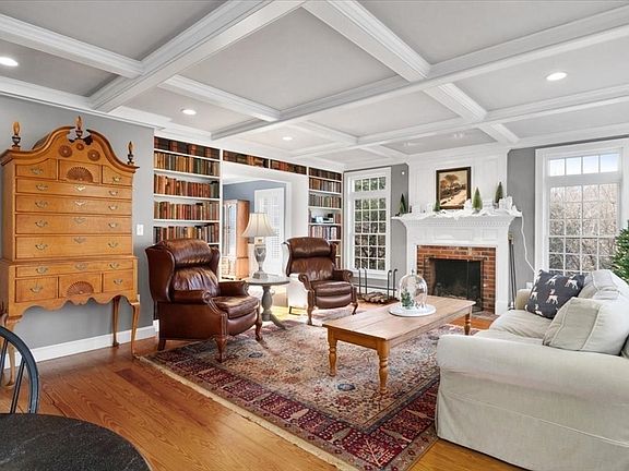 Welcome home to Wisteria Ways II, Walpole's most sought-after neighborhood, known for its family-friendly atmosphere and vibrant community. This stunning Colonial offers 4 bedrooms, 2.5 baths, a 2-car garage, and a beautifully landscaped backyard oasis. Discover an open-concept design that seamlessly connects the kitchen, dining area, and living room. The first floor also features a convenient half bath, a dedicated office space, and elegant coffered ceilings. The well-appointed kitchen boasts white custom cabinetry, stainless steel appliances, a breakfast bar, and plenty of storage. The living room is both cozy and sophisticated, with a wood-burning fireplace, built-in library shelves, and direct access to the back porch. Upstairs, the expansive main suite offers a private ensuite bathroom and additional storage. This home is perfect for modern living, with timeless style and comfort throughout. Don’t miss the opportunity to make it yours!