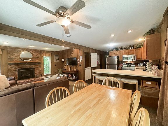 Rare 5BR chalet in the amenity rich Chimney Hill Assocation. As if the assocation Clubhouse indoor and out door pools, pond, tennis courts, pickle ball, volley ball, theater space, game room, playground and saunas aren't enough to keep your clan busy, the house is perched over the magical Binney Brook for the Zen. Listen to the year round flowing stream from your kitchen and deck, venture down the stairway in the woods to enjoy the cascading waterfalls. A special perch is an understatement. The house has a bedroom on main, two up and two down as well as a family room down with a flat screen TV and propane fired faux woodstove for cozy winter gatherings. Open kitchen dining and living room, lots of wood, a brick hearth and wooden beam mantle and a large wrap around deck. Short, level driveway and a utility shed for tools and toys. Ski Mount Snow 15 minutes away, Haystack golf and the members only Hermitage Club closer. Trails galore, Green Mt National Forest, Harriman reservoir south. Have it all, Southern Vermont on the half shell.