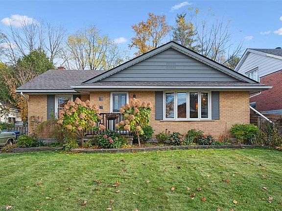 Welcome to 19 Cadillac Drive, a charming brick bungalow nestled on an impressive 60 x 140 ft lot in one of Guelph’s most beloved neighbourhoods, St. George’s Park! This warm and inviting 3-bedroom home blends timeless character with thoughtful updates and is surrounded by mature trees, beautiful gardens and serene privacy. Step inside to a bright, open-concept living and dining room, where rich hardwood floors, a massive bay window and natural sunlight create a perfect space to gather with family. The spacious kitchen offers ample counter space, two large windows and a built-in beverage fridge. All 3 generously sized bedrooms feature hardwood floors and oversized windows, sharing a beautifully renovated main bathroom complete with a modern vanity and a stunning glass walk-in shower with detailed tile work. Downstairs, a second 3-piece bathroom adds convenience and the framed basement awaits your finishing touches. The fully fenced backyard is a dream: enjoy summer barbecues on the massive patio, relax in the private hot tub or let the kids and pets run freely in the expansive grass area. Two sheds for your storage needs. Notable updates include: furnace (3 years), updated bathroom, newer roof & water softener (under 5 years), new tiled entry, central vac, and mostly updated windows (except kitchen). This unbeatable location is just around the corner from École King George and steps to St. George’s Park with tennis courts, a playground and open green space. You're a short walk to downtown Guelph, where you'll find GO Transit, boutique shopping, fantastic dining and much more! Move-in ready with room to grow - 19 Cadillac Drive is the perfect place to plant roots!