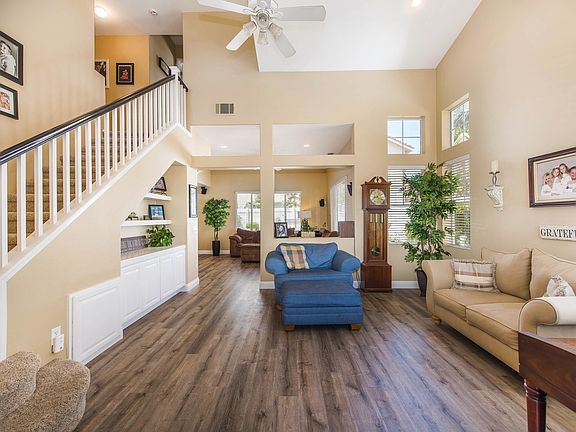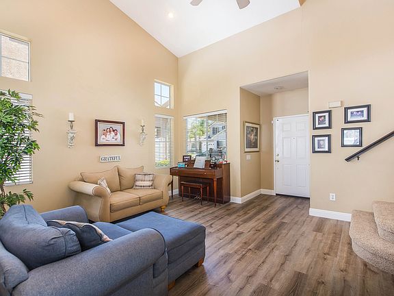 Welcome to this lovely country charmer in a prime cul-de-sac location,where the picturesque front porch is only a hint of what's to come.With a highly-coveted great room concept,this home features a beautifully open floor plan freshly painted interior w/ 4 bedrooms,2.5 bathrooms and 1,750 sq ft of living space.Ideal for entertaining,the great room boasts updated wood laminate floors,sky-high ceilings and loads of natural light.Excited to cook your first meal in your new home? A remodeled kitchen w/ Quartz counters awaits you,along w/a stainless steel stove and gorgeous white cabinetry to house all of your dining accoutrements.And you don't even have to miss any of the fun the kitchen opens up to an eating area and a bright family room with its own built-in entertainment center.Upstairs,the promise of comfort and relaxation comes in the form of the master bedroom and bath,which boasts a dual vanity and a walk-in closet.Each of the bedrms has its own unique charm,w/mirrored sliding closet doors that add the perfect dash of elegance.This home is not lacking in conveniences indoor laundry can also be found upstairs, and updated light fixtures can be found throughout the home.The low maintenance backyard comes complete w/patio ,makes for the perfect finishing touch to this charming home.Save $ with Solar Panels.Don't wait Foothill Ranch is a sought-after community for its proximity to Whiting Ranch Wilderness Park,award-winning schools and plenty of nearby shopping,dining and theaters.