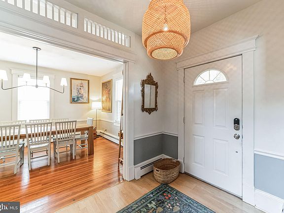 Nestled in a prime location close to TCNJ and with convenient access to I-95, this charming Colonial home exudes warmth and character. Stepping through the front door, you're greeted by a welcoming foyer adorned with antique moldings, setting a tone of timeless comfort. To the left, the spacious living room beckons with its cozy brick fireplace, abundant natural light streaming through the windows, and ample room for both relaxation and social gatherings. Adjacent to the living room, a versatile bonus room offers flexibility as an office, playroom, or game room, catering to various lifestyle needs. Across the foyer, the dining room presents an inviting space for hosting guests, characterized by its own unique charm and perfect for memorable dinners. Towards the rear of the home, the kitchen boasts a pantry, plenty of natural light, and a picturesque view overlooking the patio and sizable backyard, ideal for outdoor entertaining and enjoying tranquil evenings. A small mudroom area conveniently connects the kitchen to the backyard and patio, promising relaxation and enjoyment on warm summer nights. Upstairs, the staircase leads to three nicely sized bedrooms, some adorned with custom closets, ensuring comfort and privacy for family and guests alike. An additional room, presently used as a walk-in closet, offers potential as a small office space, providing versatility to suit personal needs. The full bathroom serves the upstairs living areas efficiently. Practical amenities include laundry facilities located in the basement, alongside ample storage space. A whole-house fan keeps the entire home cool during warmer months, while a floored walk-up attic presents opportunities for future expansion or additional storage. This meticulously maintained home combines historical charm with modern comforts including the original pumpkin pine floors and moldings throughout, promising a lifestyle of convenience and tranquility in a desirable neighborhood. Don't miss out on the chance to make this unique property your own.