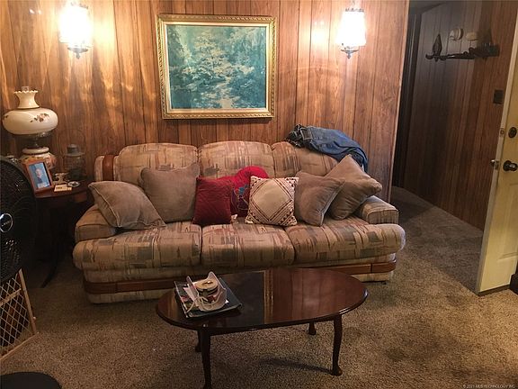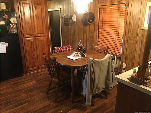 Golden Oldie with potential income. 2/2,14'x66' single-wide trailer with eat-in kitchen,2 living areas, one is a large add-on den ,f/p , and sliding door to the patio. Bedrooms located at each end of the house. This property has 6 lots, fenced, corner lot, shade trees, well water, covered patio, & 2 car carport .The detached 2 car garage is on slab, wired, tons of storage and storm cellar. There is an attached efficiency apartment that could be rented out for additional income. Lake is nearby.